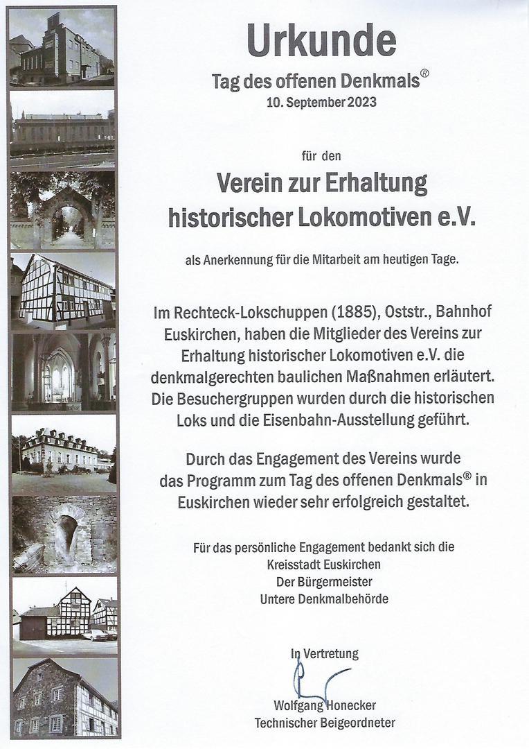 Der Verein zur Erhaltung historischer Lokomotiven e.V. wird gegründet und beim Amtsgericht Bonn eingetragen.